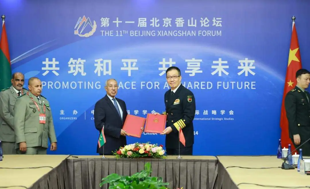 وقّعت موريتانيا والصين مذكرة تتعلق بتعزيز التعاون بينهما في المجال العسكري، وذلك على هامش النسخة الـ11، من منتدى طبيجين شيانغ شان.