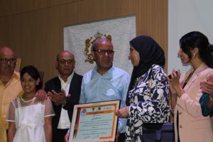 ثالثا: الأستاذ صابر بوشعيب من مواليد سنة 1960 الذي تعذر عنه الحضور وناب عنه الأستاذ زائر وقدم له شواهد وهدايا التكريم الأستاذ أشرح.