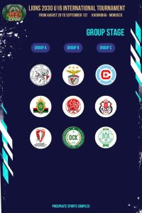 احتفالا بذكرى ثورة الملك والشعب وعيد الشباب المجيد تنظم جمعية العيون الخضراء بملعب الفوسفاط بخريبگة بشراكة مع البرنامج الوطني لتطوير كرة القدم  ما بين 28 و31 غشت 2025 النسخة الأولى من الدوري الدولي “أسود 2030” لفئة أقل من 16 سنة بمركب الفوسفاط بخريبكة، و جمعية العيون الخضراء المنظمة للحدث الكروي الدولي الهام والفريد من نوعه بجهة بني ملال خنيفرة هي منظمة تنشط في مدينة خريبكة، المغرب، يرأسها الصحفي الخريبكي بالقناة الرياضية سفيان الراشيدي. وهي معروفة بتنظيمها للفعاليات الرياضية مثل الدوري الدولي لكرة القدم لأقل من 16 سنة في نسخته الأولى عام 2024، نسخة اللاعب المغربي”عبد الحق نوري” والذي فاز به فريق ريال بتيس، والذي عرف مشاركة ريال بتيس الإسباني، أجاكس أمستردام الهولندي، أكاديمية محمد السادس، والفريق المحلي أولمبيك خريبكة، وعرف أيضا استحسانا منقطع النظير من طرف مجموعة من المدراء التقنيون، والأطر الوطنية والدولية، ومسؤولون جامعيون، الذين أشادوا بالمستوى التقني والتنظيمي للدورة، وتهدف الجمعية إلى تجميع المواهب الكروية وتوفير منصة للفرق المحلية والدولية للمنافسة في أحداث هامة في مجال كرة القدم، ويهدف الدوري الدولي إلى تعزيز وتثمين وتطوير مكانة كرة القدم القاعدية وإتاحة الفرصة أمام المواهب الصاعدة للاحتكاك بتجارب دولية متنوعة على مختلف الأصعدة. وذلك من خلال استقطاب مواهب كروية من مختلف المدارس الكروية.