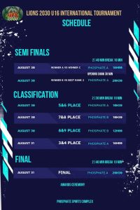 وسيتم برمجة مجموعة من المباريات الإقصائية التمهيدية والنصف النهائية والنهائية والتتويج بدرع البطولة طيلة أيام الدوري الدولي، وبرمجة الأنشطة الموازية التي ستساهم لا محال في إحياء النهضة الكروية لمدينة خريبكة، من ضمنها تنظيم ندوة دولية على هامش النسخة الأولى للدوري الدولي أسود 2030 يوم السبت 30 غشت 2025 على الساعة الثانية زوالا بمدرسة كود الجيل الجديد 1337 بخريبكة حول موضوع: “الديبلوماسية الرياضية في خدمة القضية الوطنية الأولى “.