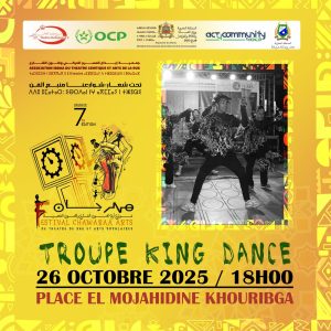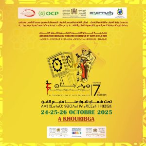 تحتضن مدينة خريبكة، في الفترة الممتدة من 24 إلى 26 أكتوبر 2025، فعاليات الدورة السابعة من مهرجان “شوارع آرت” لفنون الشارع والفنون الشعبية، المنظم تحت شعار: “شوارعنا منبع الفن” من طرف جمعية إبداع للمسرح الحركي وفنون الشارع وذلك بدعم من وزارة الشباب والثقافة والتواصل – قطاع الثقافة، والمجمع الشريف للفوسفاط (OCP)، ومسرح محمد الخامس، ومجلس جماعة خريبكة، وبشراكة مع المديرية الجهوية لقطاع الثقافة – جهة بني ملال خنيفرة، ومبادرة Act4Community خريبكة. وبتعاون مع المديرية الإقليمية لقطاع الثقافة بخريبكة والخزانة الوسائطية م.ش.ف خريبكة والمديرية الإقليمية لقطاع الشباب بخريبكة.