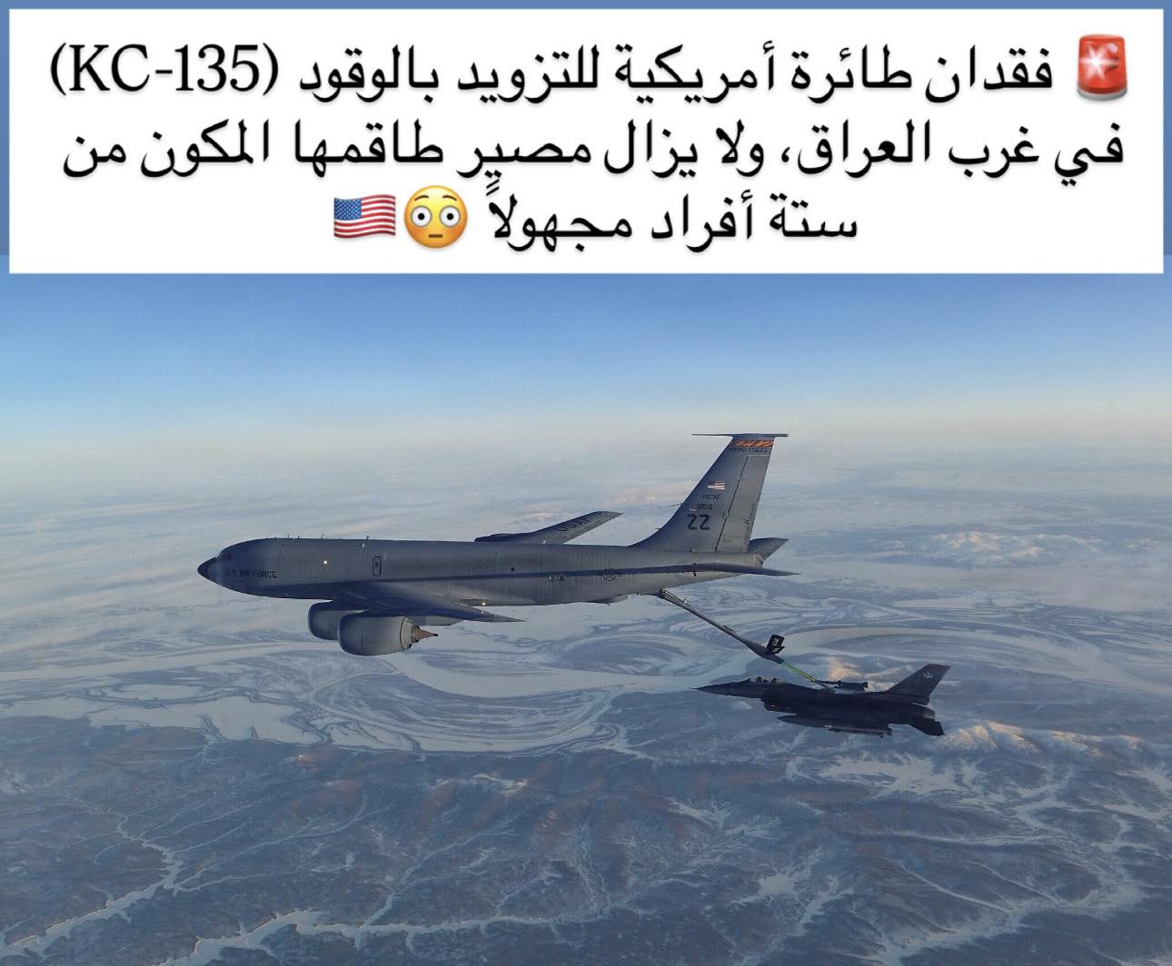 أعلنت القيادة المركزية الأمريكية، فقدان طائرة تزوّد بالوقود من طراز Boeing KC-135 Stratotanker في غرب العراق أثناء مشاركتها في عملية العدوان الجاري ضد أهداف إيرانية.