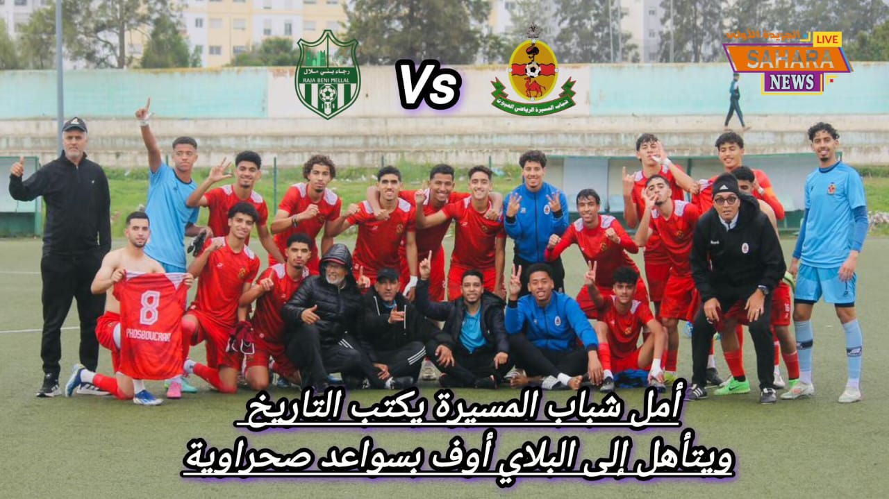 حقق فريق أمل شباب المسيرة الرياضي إنجازا تاريخيا غير مسبوق بتأهله إلى مباراة البلاي أوف في موسم استثنائي بصم عليه أبناء الصحراء بعزيمة وإصرار كبيرين مؤكدين أن العمل الجاد والرؤية الواضحة قادران على صناعة الفارق وكتابة صفحات جديدة في سجل الأندية الصحراوية.