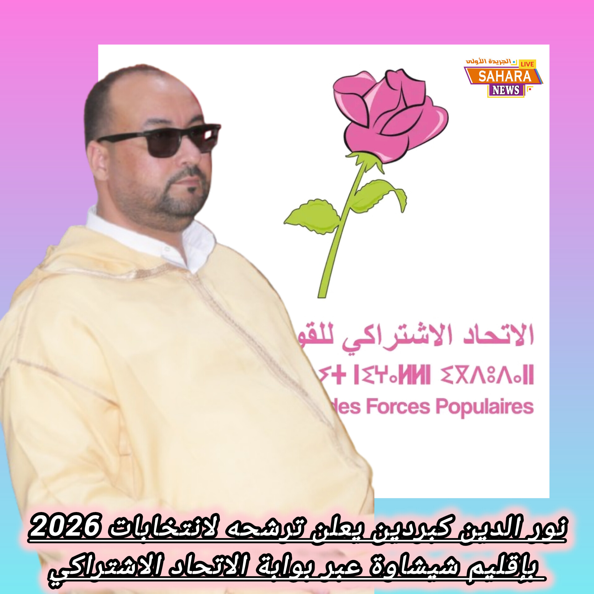 أعلن نور الدين كبردين رئيس جماعة سيدي المختار دخوله رسمياً غمار الاستحقاقات البرلمانية المرتقبة سنة 2026 بإقليم شيشاوة مرشحاً باسم حزب الاتحاد الاشتراكي للقوات الشعبية. ويأتي هذا القرار في سياق دينامية سياسية متجددة يعرفها الإقليم حيث يسعى كبردين إلى تعزيز حضوره السياسي وترجمة تجربته في تدبير الشأن المحلي إلى تمثيلية برلمانية.