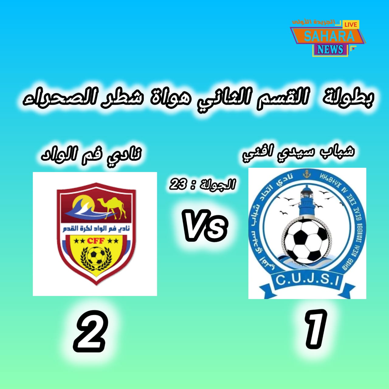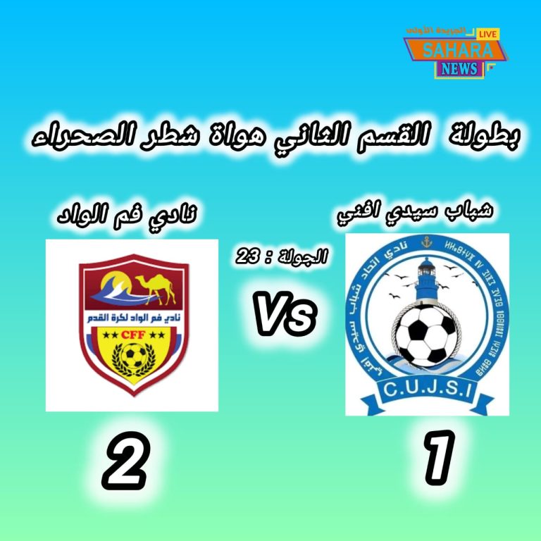 برسم الجولة الثالثة والعشرين من بطولة القسم الثاني هواة شطر الصحراء احتضنت مدينة كلميم، مساء اليوم الأحد 19 أبريل 2026 مواجهة قوية لا تقبل القسمة على اثنين جمعت بين فريق شباب سيدي إفني وضيفه نادي فم الواد في لقاء حمل الكثير من الإثارة والتشويق منذ صافرة البداية.