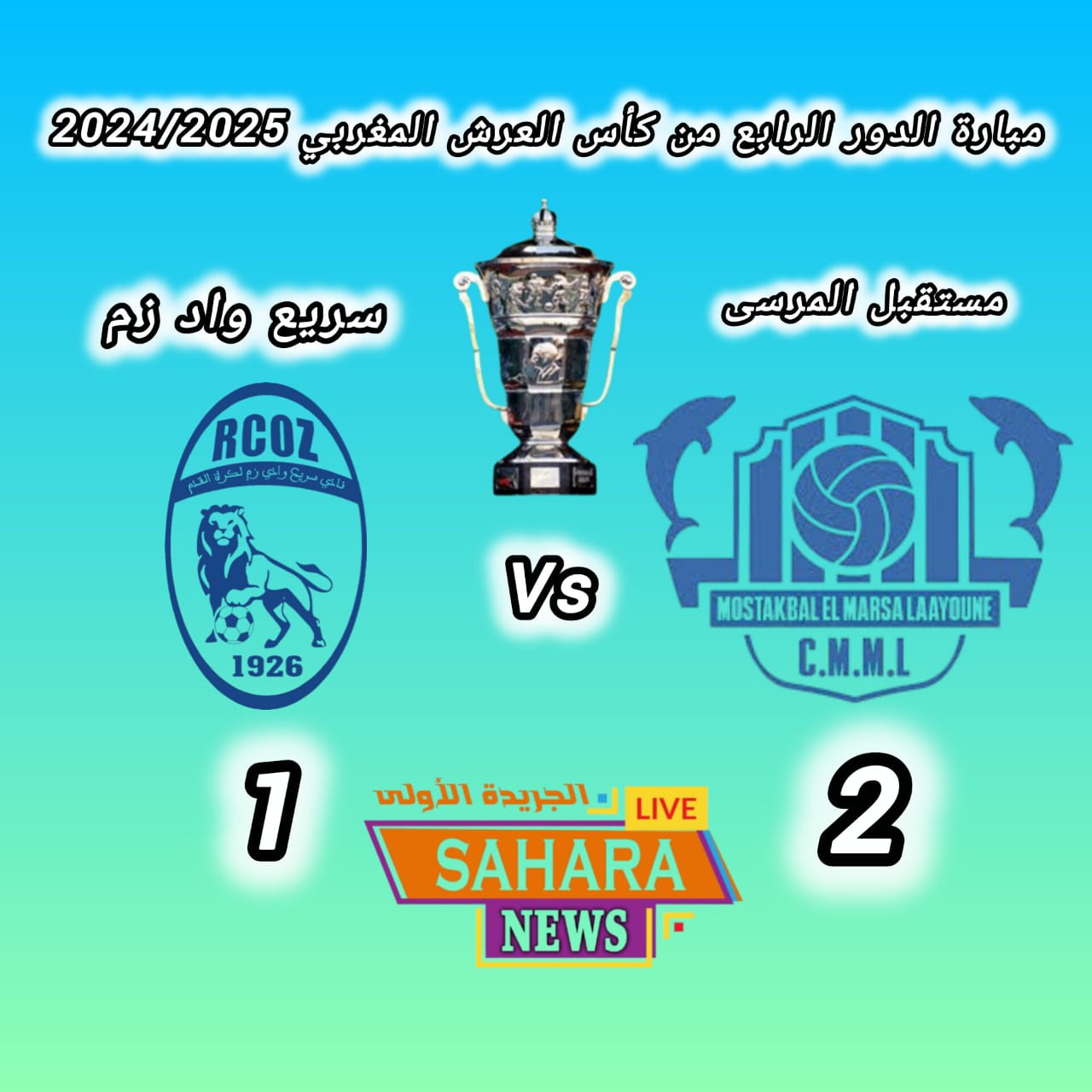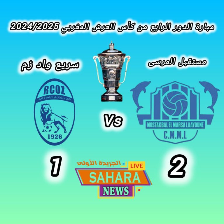 حقق فريق مستقبل المرسى فوزاً مهماً ومستحقاً على حساب ضيفه سريع واد زم بنتيجة (2-1)، في المواجهة التي جمعتهما مساء اليوم الأحد 19 أبريل 2026، برسم الدور الرابع من منافسات كأس العرش المغربي لموسم 2024-2025، على أرضية الملعب البلدي بالمرسى.