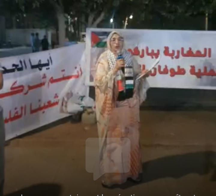 وقالت أبلاضي، في كلمة ألقتها باسم المرأة الطانطانية خلال الوقفة التي نظمتها المبادرة المغربية للدعم والنصرة بساحة العبور قرب مسجد المسيرة الخضراء، مساء أمس الأحد 19 أبريل الجاري إن المشاركين اجتمعوا من أجل التنديد بالجرائم المرتكبة في حق الأسرى الفلسطينيين، وما يتعرض له المسجد الأقصى من إغلاق وتدنيس وانتهاكات متواصلة.