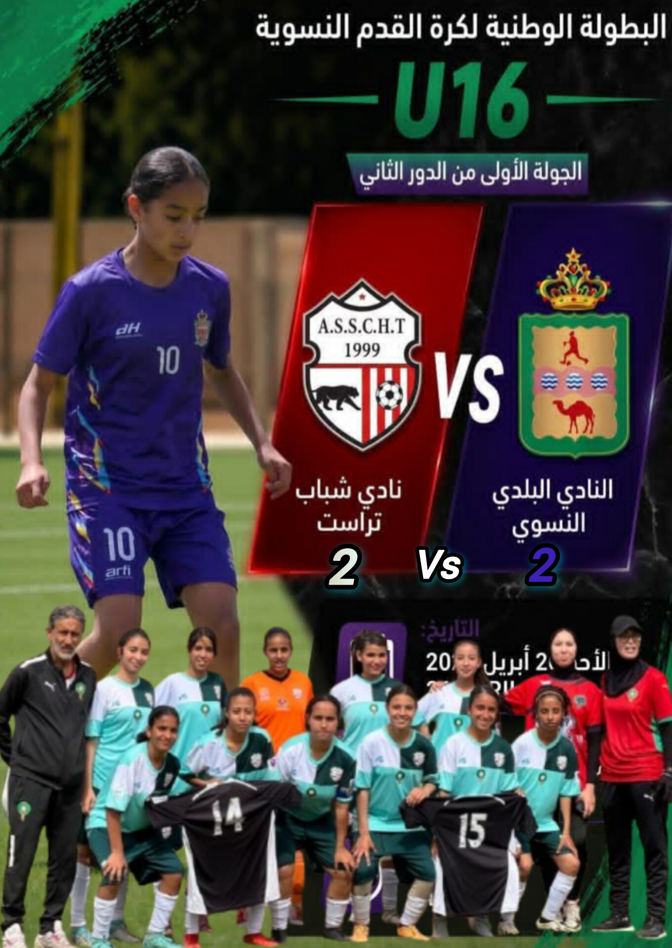 احتضن ملعب با كريم الصبيحي بمدينة إنزكان زوال يوم الأحد 26 أبريل 2026 على الساعة 12:00 مباراة قوية برسم الجولة الأولى من الدور الثاني من منافسات كرة القدم النسوية جمعت بين فريق شباب تراست والنادي البلدي العيون وانتهت بالتعادل الإيجابي هدفين لمثلهما في لقاء أكد أن روح التحدي قد تتفوق أحيانا على منطق الإمكانيات.